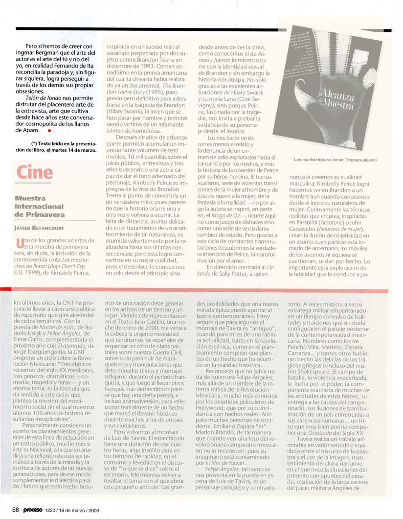 Pero si hemos de creer con Ingmar Bergman que el arte del actor es el arte del tú y no del yo, en realidad Fernando de Ita reconcilia la paradoja y, sin figurar siquiera, logra perseguir a través de los demás sus propias obsesiones.