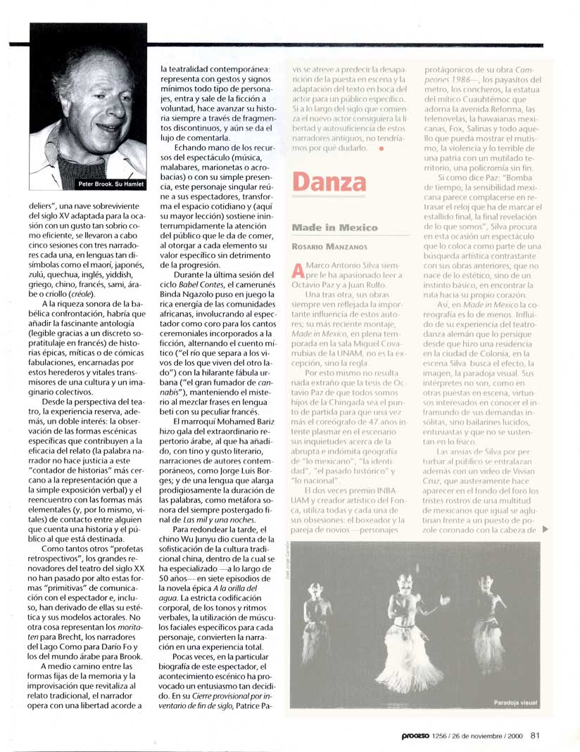 Pocas veces, en la particular biografía de este espectador, el acontecimiento escénico ha provocado un entusiasmo tan decidido. En su “Cierre provisional por inventario de fin de siglo”, Patrice Pavis se atreve a predecir la desaparición de la puesta en escena y la adaptación del texto en boca del actor para un público específico. Si a lo largo del siglo que comienza, el nuevo actor consiguiera la libertad y autosuficiencia de estos narradores antiguos, no tendríamos por qué dudarlo.