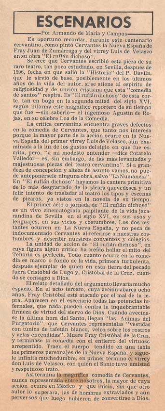 Es oportuno recordar, durante este centenario cervantino, cómo pintó Cervantes la Nueva España de Fray Juan de Zumárraga y del virrey Luis de Velasco en su obra El rufián dichoso.
